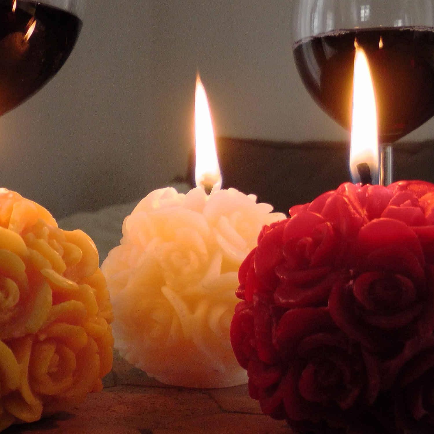 Die Rosenkugeln werden in der Kerzenwerkstatt der Werksiedlung St.Christophorus in Form gegossen. Die Rosenkugeln gibt es in verschieden Farbvarianten mit einem Durchmesser von 4,5 cm.