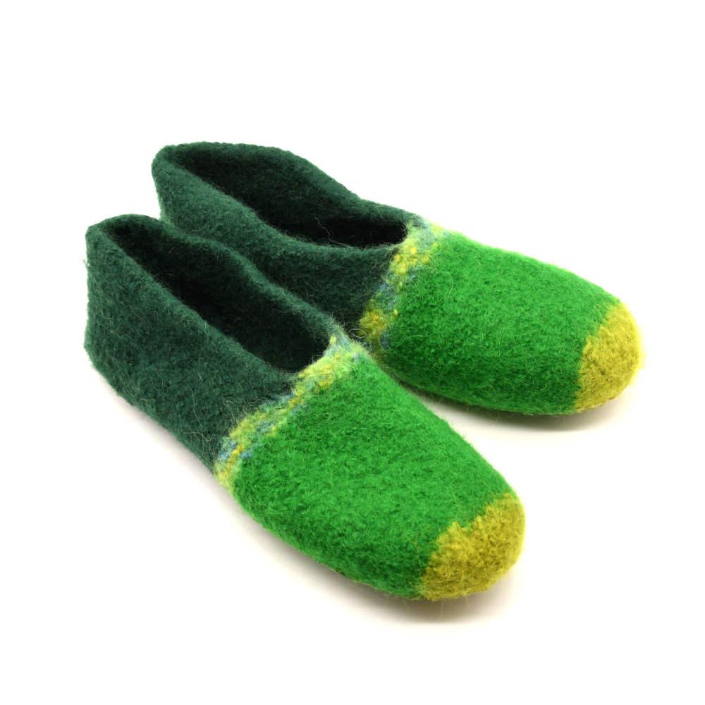 Strickgefilzte Hausschuhe "Waldesfuß" für Damen aus 100% Schurwolle und rutschfesten Latexsohlen