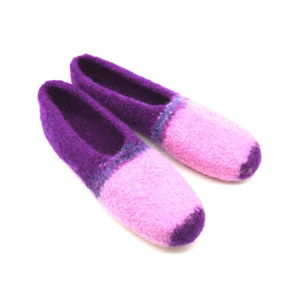 Strickgefilzte Hausschuhe "Traumfinke" für Damen aus 100% Schurwolle und rutschfesten Latexsohlen.