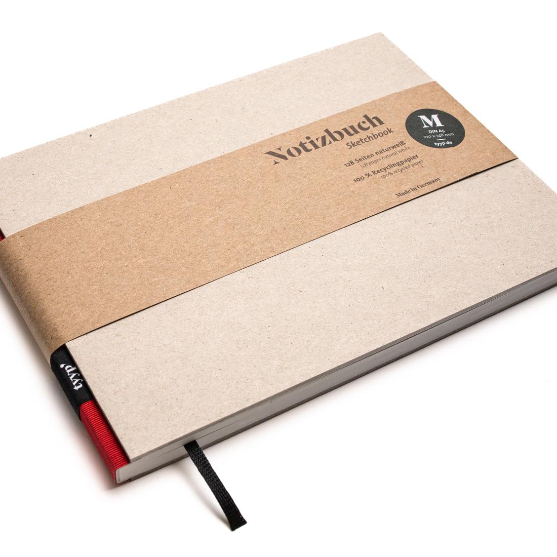 Dein Öko Notizbuch im Querformat ist nachhaltig in Handarbeit produziert. Nachhaltigkeit bei tyyp heißt, Strom aus der hauseigenen Photovoltaikanlage, 100 % Recylingpapiere, Produktion in Deutschland und in Zusammenarbeit mit sozialen Trägern.