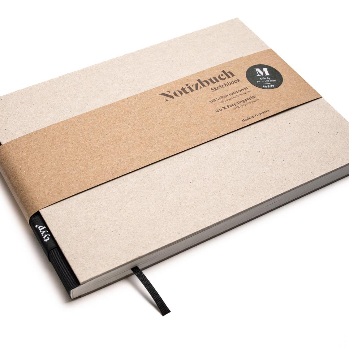 Dein Öko Notizbuch im Querformat ist nachhaltig in Handarbeit produziert. Nachhaltigkeit bei tyyp heißt, Strom aus der hauseigenen Photovoltaikanlage, 100 % Recylingpapiere, Produktion in Deutschland und in Zusammenarbeit mit sozialen Trägern.