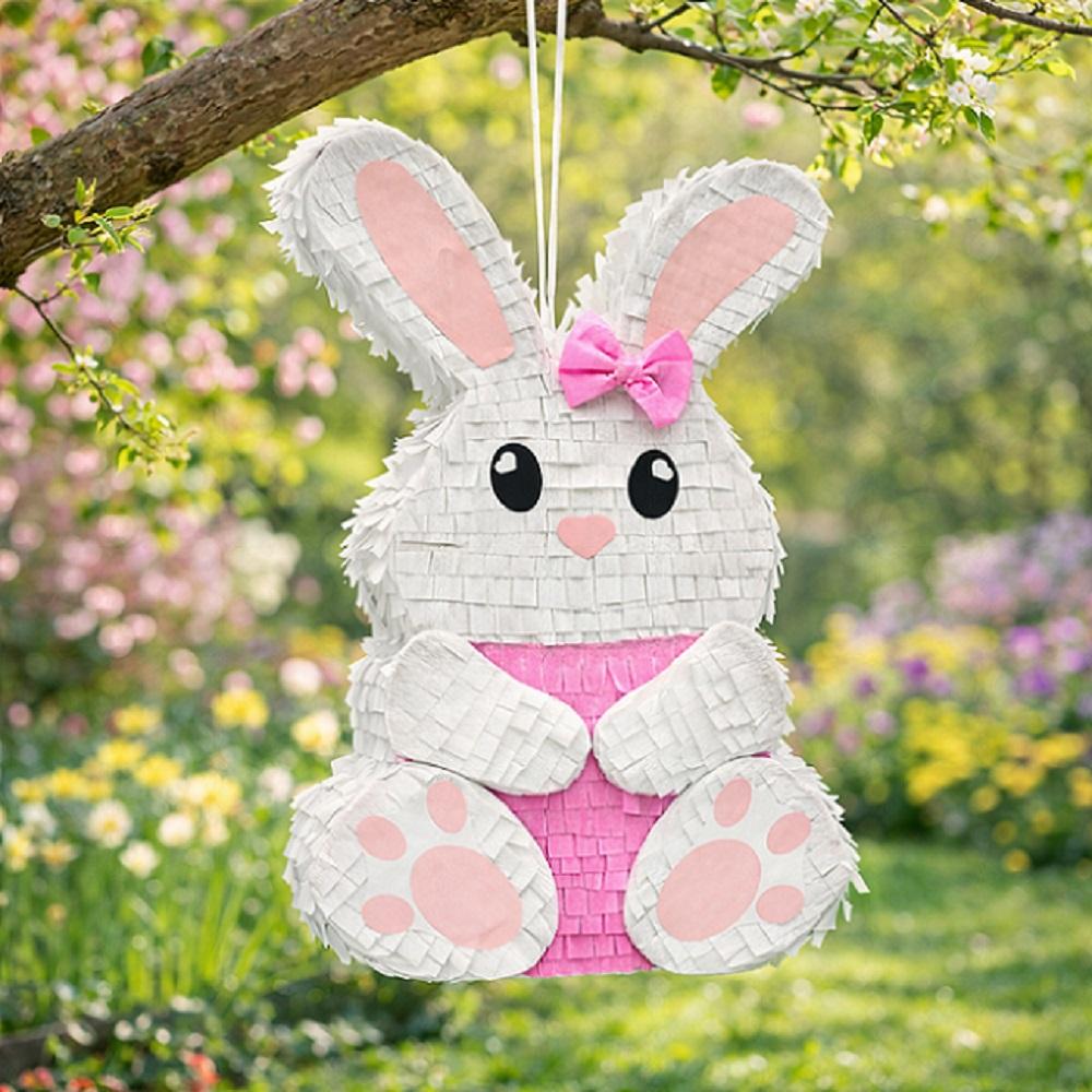 Diese liebevoll gestaltete Piñata im Häschen-Design ist ein echter Hingucker für jede Osterfeier. Mit ihren großen Ohren, den zarten rosafarbenen Details und der kleinen Schleife sorgt sie sofort für fröhliche Stimmung und macht jedes Fest zu etwas ganz Besonderem.