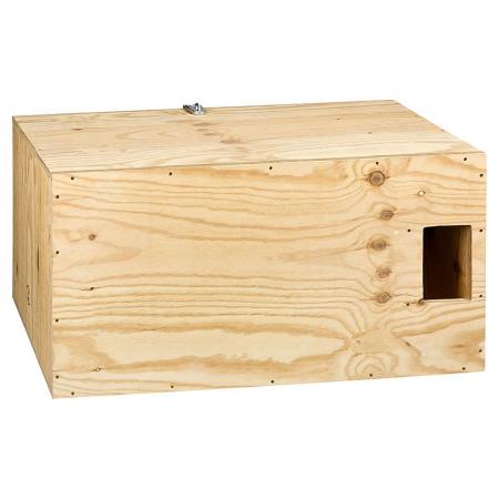 Der Schleiereulen-Kasten eignet sich für den Einbau in Scheunen, Ställen und Kirchtürmen. Kaum eine Vogelart ist so unmittelbar vom Vorhandensein geeigneter Brutplätze abhängig wie die Schleiereule. Mit einem speziell für sie konstruierten Nistkasten kann die elegante Eule mit etwas Glück auch an Orten angesiedelt werden, wo sie bislang noch nicht brüten konnte. Helfen Sie mit und schaffen Sie für die Schleiereule geeignete Brutplätze.