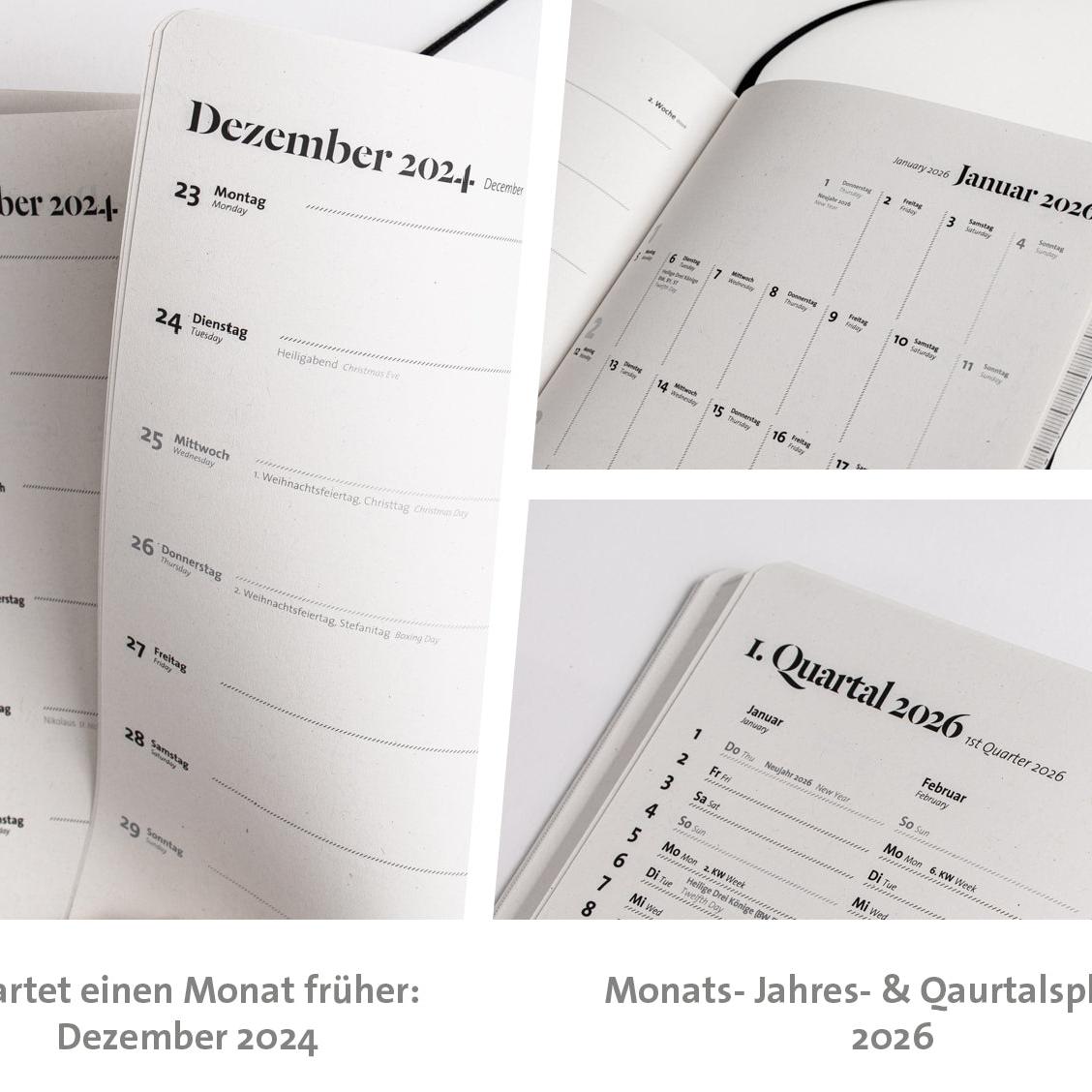 Der 2026 für formbewusste Feingeister mit neuen Farben und nützlichen Inhalten für das Jahr 2026. Das Wochen-Layout auf zwei Seiten bietet viel Platz zum Schreiben und Notieren: links der Kalender für Termine, rechts eine ganze Seite zum freien Nutzen.Dein Taschenkalender 2026 von tyyp® vereint Klarheit, Funktion und Nachhaltigkeit in einem durchdachten Design. Er startet bereits im Dezember 2025 und begleitet dich mit Wochenlayout, Zeitmanagement-Methoden und Selbstreflexion durch das Jahr.